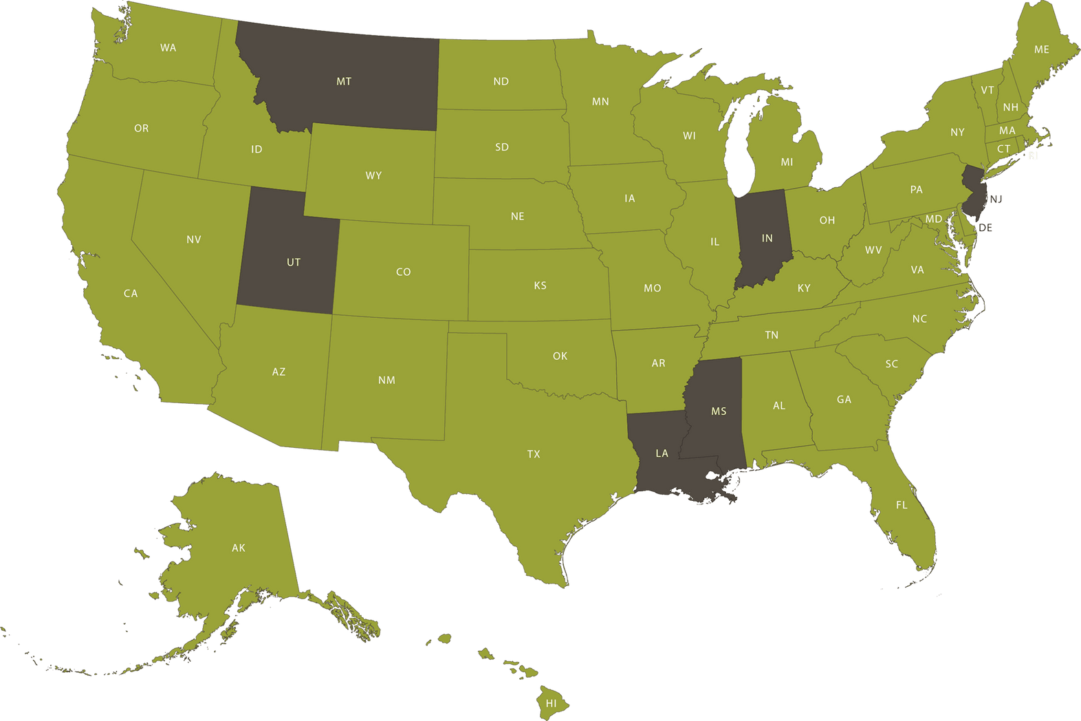 We’re currently allowed to ship to all states marked in green, but we cannot ship to states marked gray. See below for additional details and limitations for each specific state.